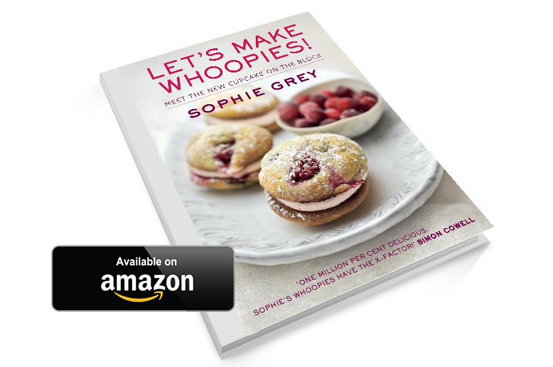 This is our first book and secretly we’re very proud of it. It’s jam-packed with more than 70 delicious recipes for whoopies and cupcakes – from the classic mini-victoria sponge to a wonderful array of chocolate and fruity delights. It includes sections on making celebration cakes for special occasions and some great fun ideas to amuse any little bakers you might have at home. This is also the only place you’ll find the recipe for Sophie’s award-winning Lemon Drizzle Cupcake – which sounds yummy and, in tests, proved 6-times as yummy as it sounds!